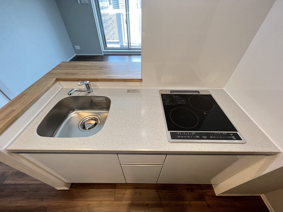システムキッチンは、IH対応のコンロ2口が付いております!