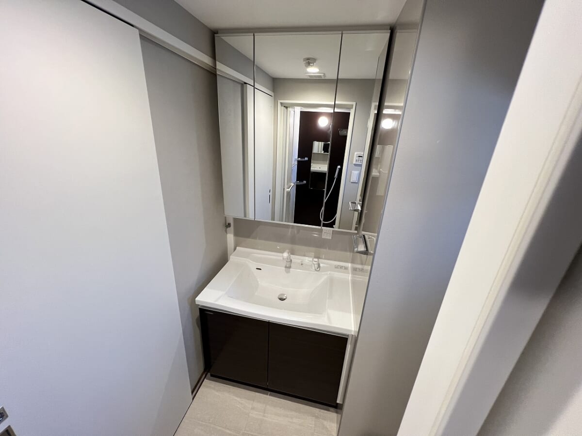 独立洗面台は三面鏡です!!