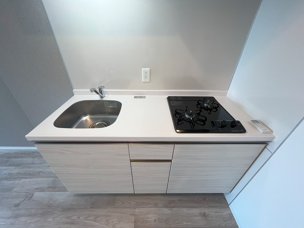 システムキッチンは、ガス対応のコンロ2口が付いております!