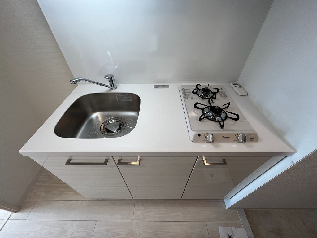 システムキッチンは、ガス対応のコンロ2口が付いております!