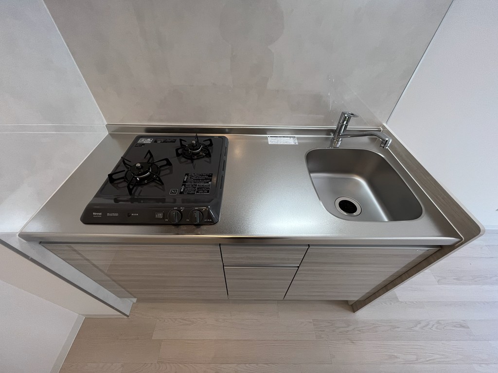システムキッチンは、ガス対応のコンロ2口が付いております!
