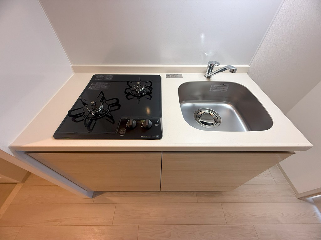 システムキッチンは、ガス対応のコンロ2口が付いております!