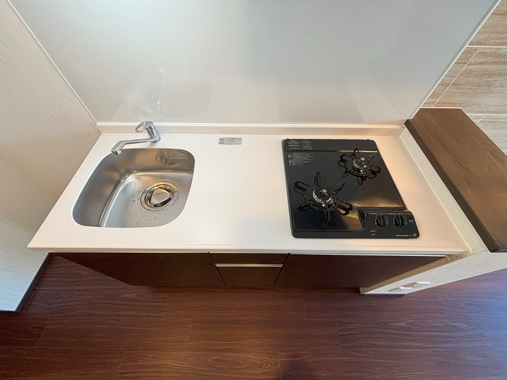 システムキッチンは、ガス対応のコンロ2口が付いております!