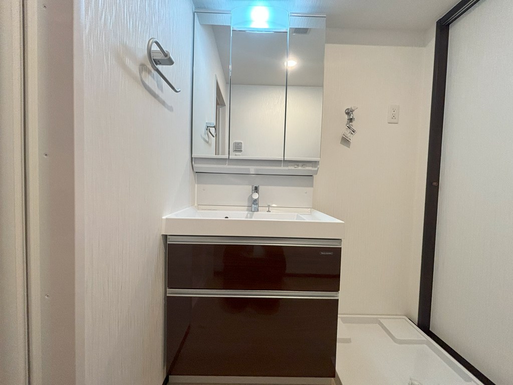 三面鏡の綺麗な洗面台は男女共に嬉しい条件です!!!